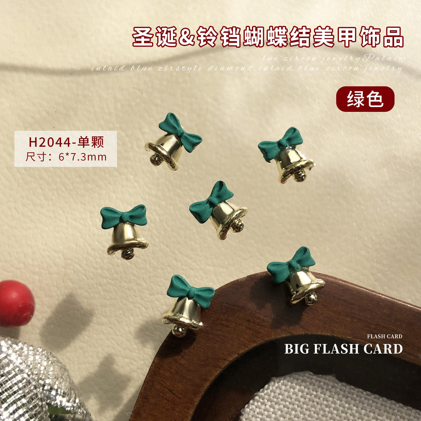 4pcs Red/Green/Gold/Silver Christmas bell with bowtie Nail Decoration Charm