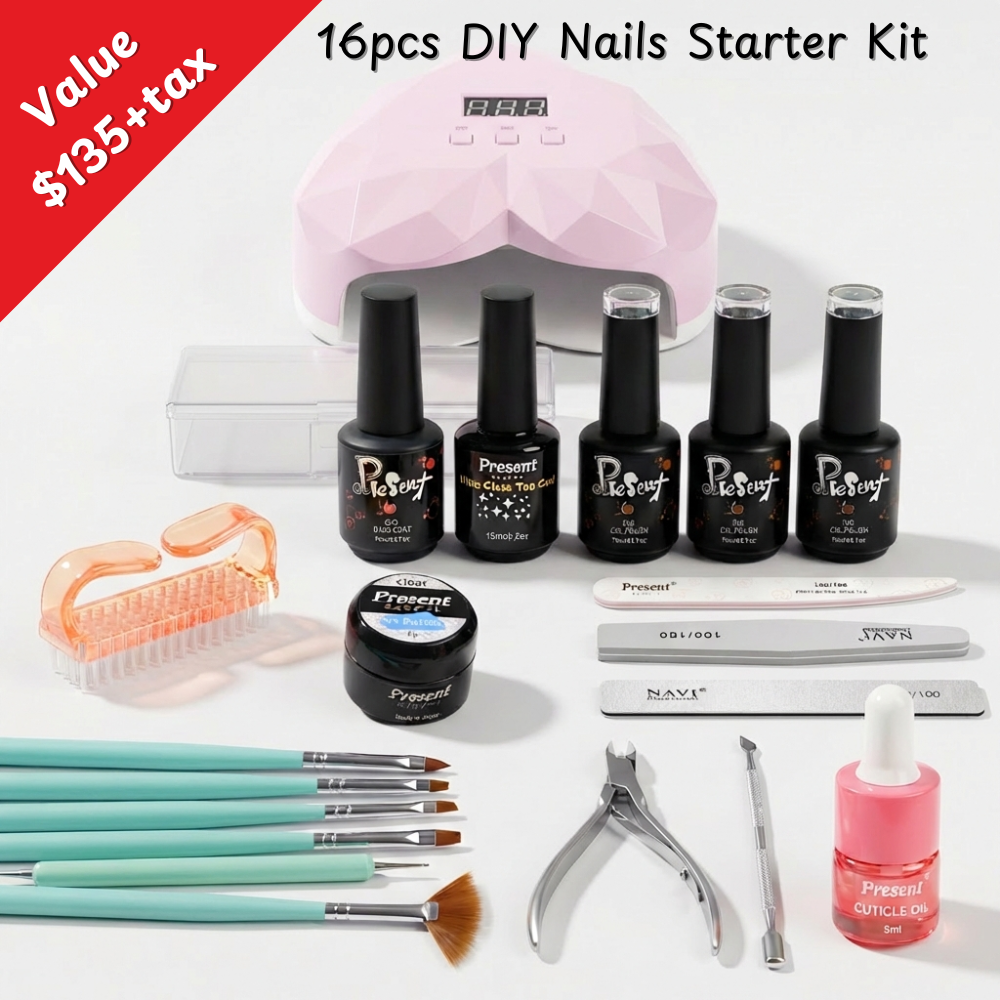 3Â x Present Color Gel Polish (Please leave your preferred colour scheme(red, burgundy, blue, navy etc... on 'Note' section on checkout), our staff will choose three gel polishes for you based on that color scheme: 1 * solid color, 1 * pearlescent shade, and 1* glitter shade. Please note that you can not choose a specific color;)